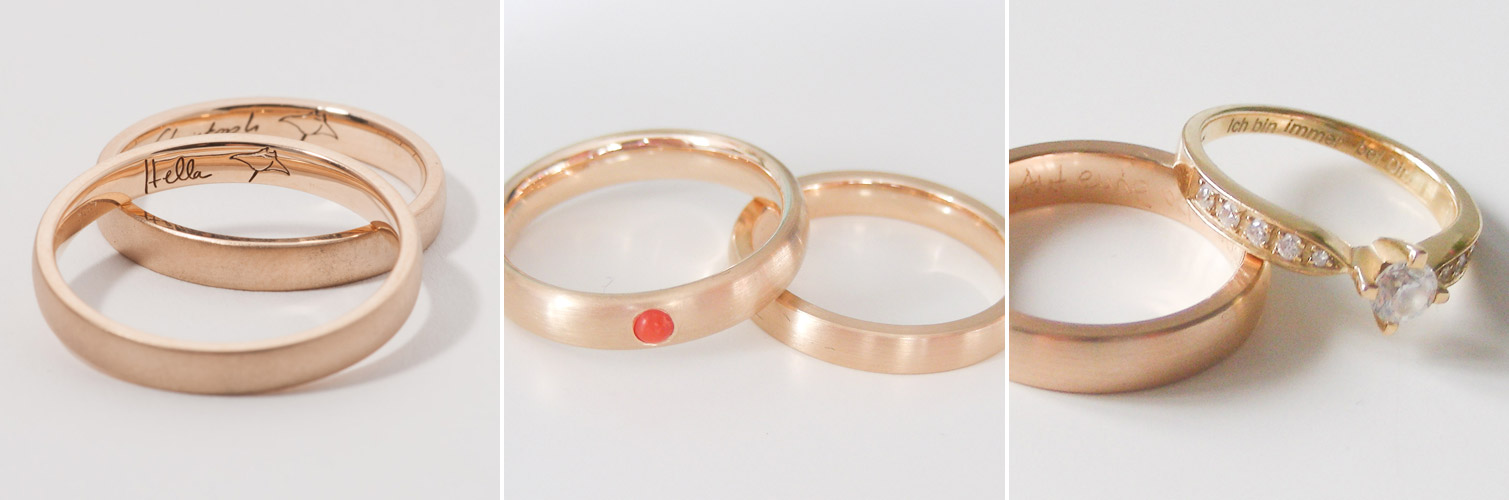 Wir haben uns auf Trauringe, Eheringe und Verlobungsringe spezialisiert, fertigen aber natürlich auch individuellen Schmuck nach Ihren Wünschen.